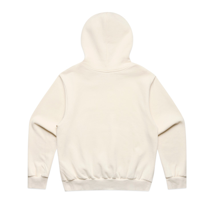 Our ethics & sustainability →350gsm 80/20 cotton-recycled poly CVC fleece. Box cut with dropped shoulders. Kangaroo pocket, no drawcord. 2×2 ribbing at hem and cuffs. Pre-shrunk.
