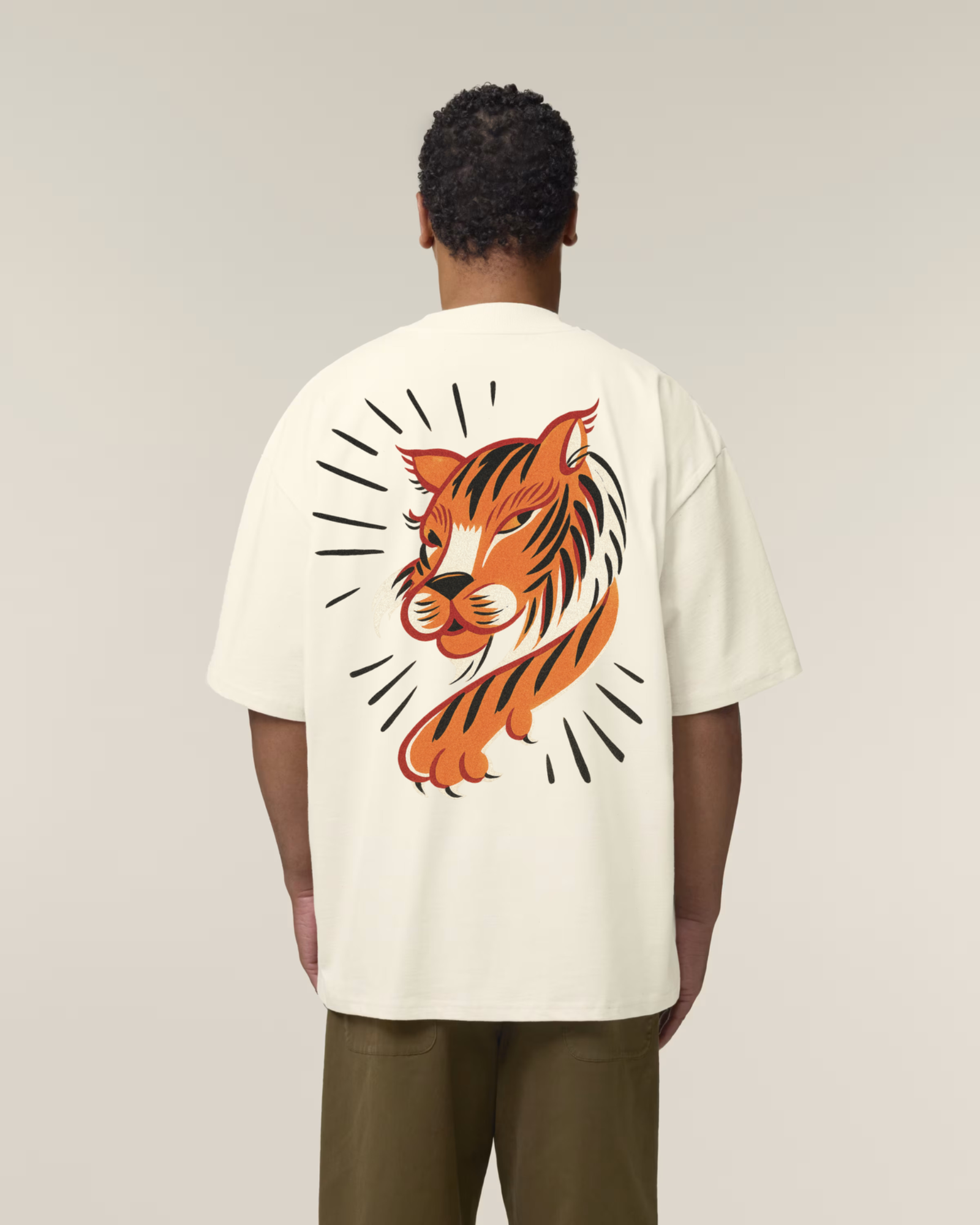 Our ethics & sustainability →Hand-rendered tiger graphic. 280gsm organic cotton. From the first Nomad × Mutt run.